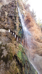 The trail goes right by (and almost under) the Hot Springs Waterfall. It's tall and skinny, cascading down imperfectly from the cliff above. The girls weren't too interested in the falls. They didn't want to stop under it, and it was too near to the path for them to enjoy it up close (they did not appreciate the spray of water raining on the walkway). It was, however, a really interesting and unique waterfall to take in.