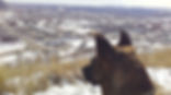 This was a really nice hike up and down the hill, as well as a good amount of exercise. The dogs had a great time. Maggie enjoyed rolling and playing in the snow whenever she got a chance. Ursa enjoyed looking out at the scenery below her as she climbed.